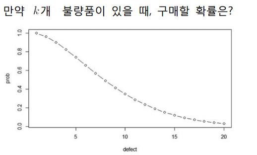 만약 이 상자에 5개의 불량품이 있을 때, 구매할 확률은?