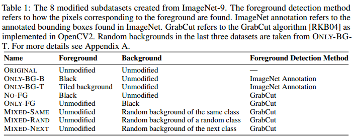새로운 데이터셋인 ImageNet-9로, classification에서 배경의 역할을 평가합니다.