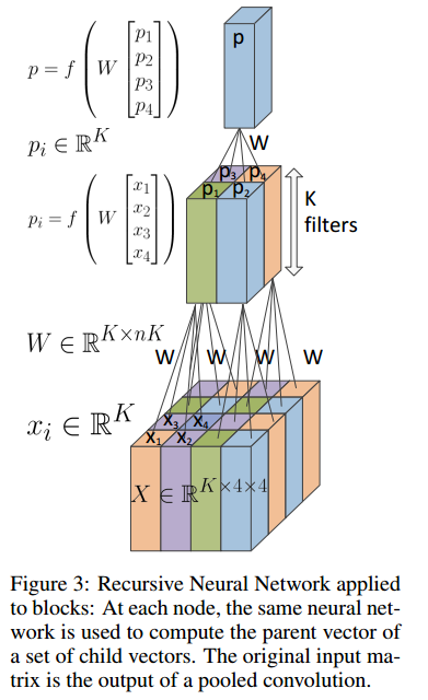 트리 구조로 동일한 신경망을 반복적으로 적용하여, 계층적인 특징 표현을 학습합니다. 트리의 마지막 노드는 K차원 벡터이며, 마지막 노드의 개수는 r^2개가 존재합니다.