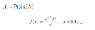 이를 $X$는 모수 또는 평균이 $\lambda$인 포아송분포를 따른다고 하고 $X$ ~ $P(\lambda)$라고 표시합니다.