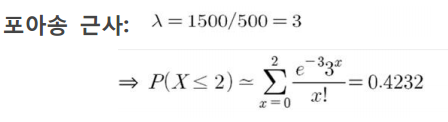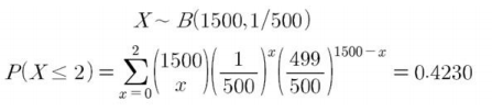 이 경우에 포아송분포를 이용하여 이항분포의 근사확률을 구하면 됩니다.