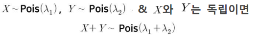 확률변수 $X$와 $Y$가 포아송분포를 따르고 독립이면 $X + Y$도 포아송분포를 따릅니다.
