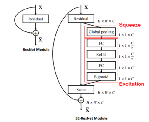 SENet을 잠시 살펴보면 피쳐맵에서 채널 간 가중치를 계산하여 이 가중치를 피쳐맵에 element-wise로 곱합니다.
