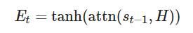 nlp에서 attention vector를 계산하는 과정을 살펴보겠습니다. 우선 encode output과 decode의 이전 hidden state를 사용하여 energy를 계산합니다.