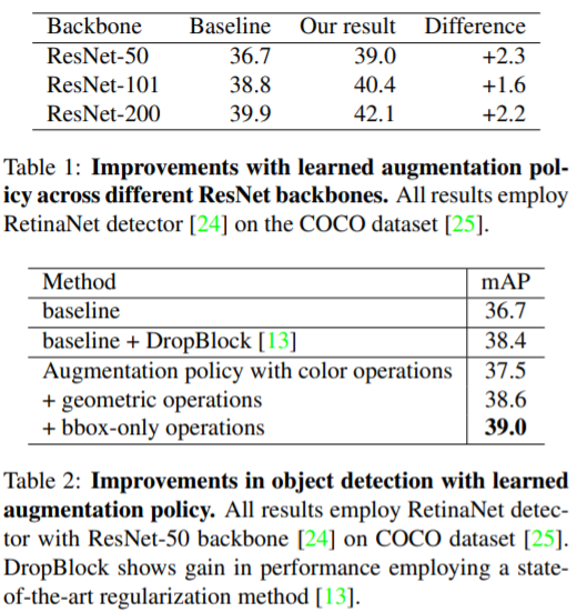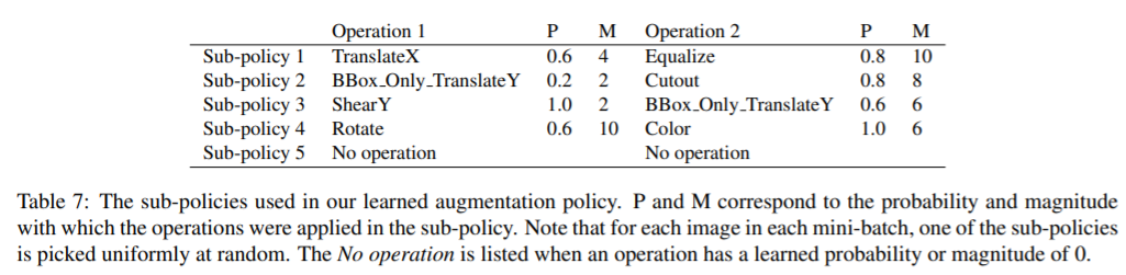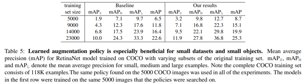 learned augmentation policy는 small dataset과 small object에서 좋은 효과를 보입니다.