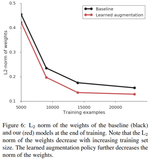 위 그림은 learned augmentation policy가 dataset의 크기가 적은 경우에 큰 효과를 보인다는 실험결과입니다.