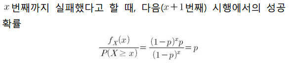 기하분포의 중요한 특성인 무기억성을 알아보겠습니다.