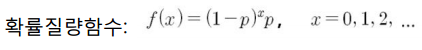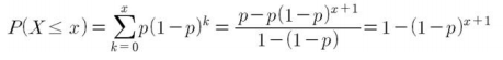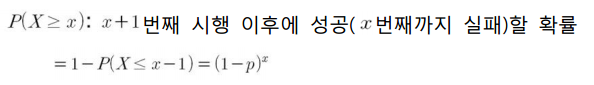 x+1번째 시행 이후에 성공(x번째까지 실패)할 확률은 다음과 같습니다.