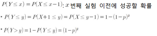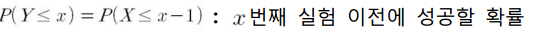 $P(X \leq x-1)$은 x-1번째 이전까지 실패할 확률을 의미합니다.