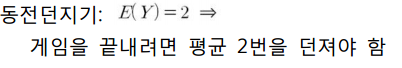 동전을 앞면(p=1/2)이 나올 때 까지 동전을 던지기로 하겠습니다.