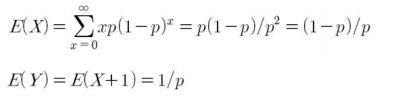 기하분포의 기대값은 다음과 같습니다.
