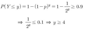 $P(Y \leq y) \geq 0.9$를 만족하는 최소 $y$는 다음과 같이 구할 수 있습니다.