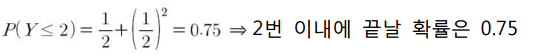 2번 이내 끝날 확률은 다음과 같이 구할 수 있습니다.