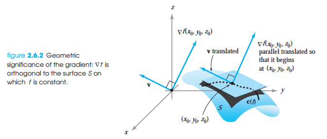 level surface와 함수 f의 그래디언트 사이의 관계를 살펴보겠습니다. level surface는 함수 f의 값을 상수로 두고, 그 상수를 만족하는 점들의 집합을 나타낸 것입니다. 그래디언트는 함수 f의 값이 가장 빠르게 변화하는 방향을 나타냅니다. 이에반해 level surface는 f의 값이 전혀 변하지 않는 방향으로 놓여져 있습니다. level surface와 그래디언트는 직교합니다.