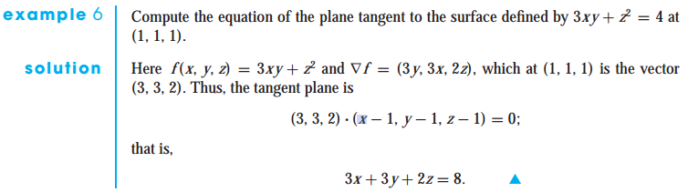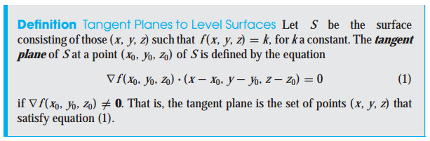 그래디언트와 level surface는 수직이므로, 둘을 내적하면 0이 됩니다. 따라서 그래디언트와 내적을 했을 때, 0이 되는 벡터가 접평면이 됩니다.
