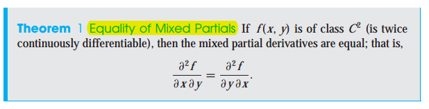 만약, 함수 f(x,y)가 class C2이면 혼합 편도 함수들이 같습니다. 이는 n변수 함수로 쉽게 확장할 수 있습니다.