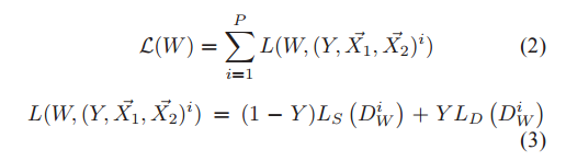 두 data는 파라미터를 공유하는 두 개의 CNN에 전달하여 G(x1), G(x2)를 출력합니다. 그리고 G(x1), G(x2) 사이에 L2 Norm을 계산하여 loss function에 활용합니다.