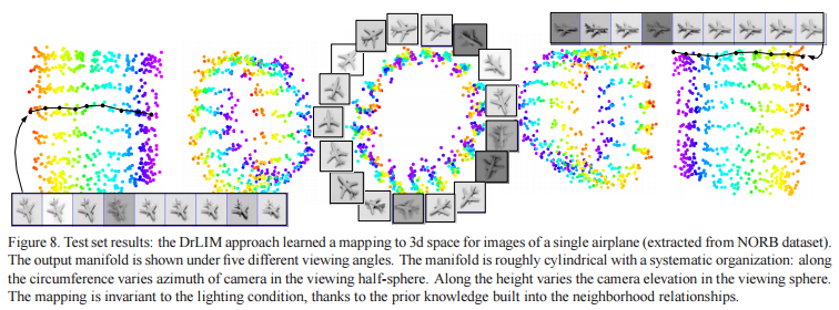 논문에서는 training sample사이에 이웃 관계를 활용하여 저차원 매니폴드 공간으로 map하는 함수를 만듭니다. 근접 관계는 prior knowledge 또는 maual labeling, any distance metric으로부터 추출할 수 있습니다. 이 함수는 lightning change 및 geometric distortion 같은 입력값의 non-linear transformation 에 불변합니다. 또한 output space에 일관성을 갖고 smooth한 mapping을 합니다.