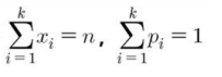 각 시행에서 $i$번째 결과의 확률은 $p_i$로 고정합니다.