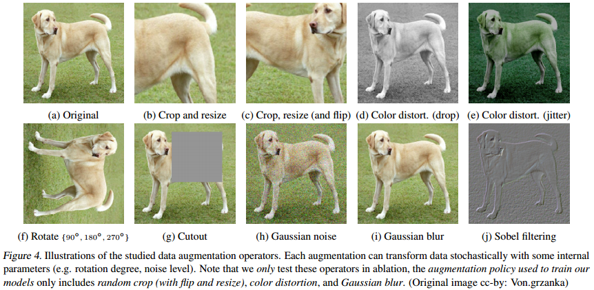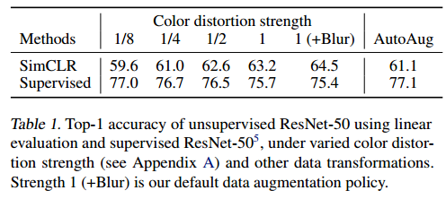해당 논문에서 SSL은 random crop and resize, color distortion, blur 가 결합된 augmentation이 좋다고 설명합니다.