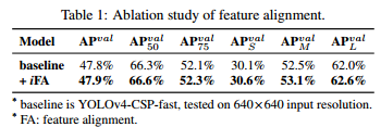 각 FPN의 feature map에 feature alignment를 사용합니다. 아래는 feature alignment를 사용했을 때의 성능 결과입니다.