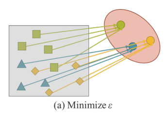 error term을 최소화하는 방향으로 학습하여 target과 신경망의 출력값이 동일해지도록 합니다. 이는 동일한 target을 지닌 observation들이 f에 의해 얻어진 sub space에서 하나의 점이 되도록 합니다. 다른 말로하면 해 공간은 현재 task에 대하여 discriminative가 얻어지고, 다른 task에 취약합니다.