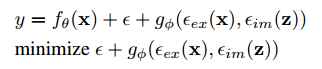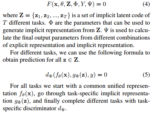 두 error term은 관측값 x와 latent code z로부터의 explicit error와 implicit error 입니다. g는 explicit, implicit knowledge 로부터의 정보를 선택하거나 결합하는 역할을 하는 task specific 연산입니다.