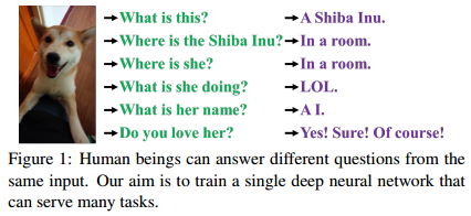 위 강아지 그림을 보고 사람은 두 가지 경험을 활용하여 여러 질문에 답변할 수 있습니다.