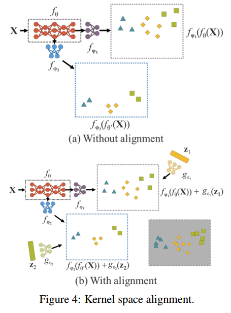 신경망의 각 output kernel space를 align하기 위해 kernel space는 translated, rotated, scaled가 될 수 있습니다. 위 그림 (b)가 예시입니다. 이러한 연산은 object detection에서 large object와 small object를 feature alignment하는 FPN와 large model과 small model를 통합하기 위한 knowledge distillation과 같이 여러 분야에 적용되고 있습니다.