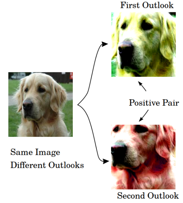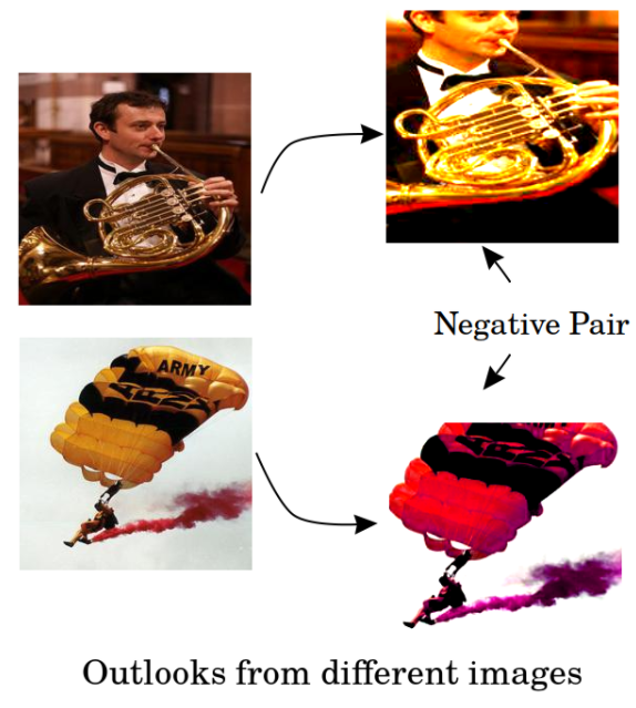 동일한 이미지에서 적용된 trasnformation 이미지는 similar pair 입니다.