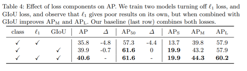 L1 loss만 사용하면 큰 객체와 작은 객체 사이에 different scale을 갖습니다. 따라서 $L_{iou}$를 추가하여 scale-invariant 성질을 갖도록 합니다. 이 loss는 batch 내에 존재하는 객체의 수에 의해 normalize 됩니다.