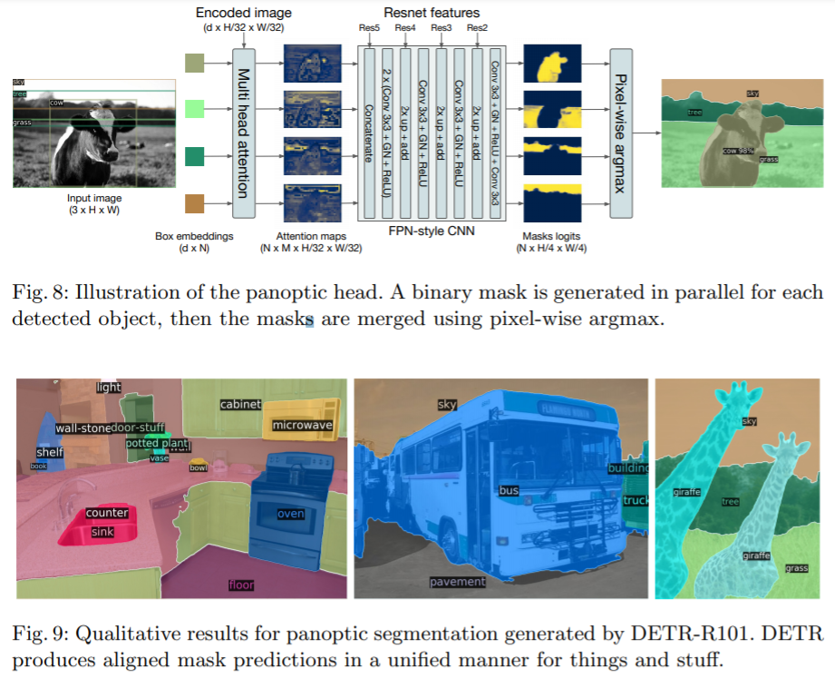 segmentation을 위한 DETR 구조와 qualitative result