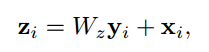 y는 non-local block의 출력값이고 x는 residual connection 입니다. W는 weight matrix이며 yi에 대해 1x1x1x conv로 position-wise embedding을 계산합니다.