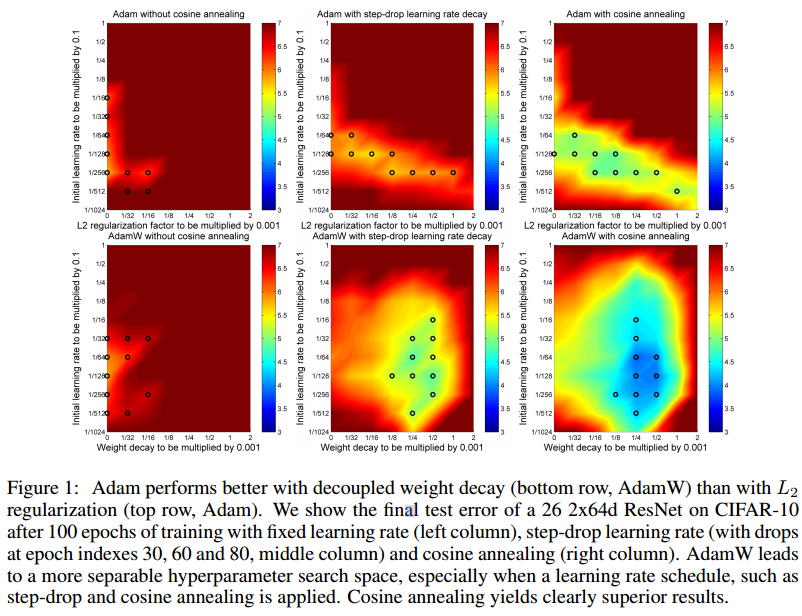 각 파라미터에 대해 서로 다르 learning rate를 적용하는 Adam은 global learning rate multiplier scheduler(ex, cosine annealing)를 사용하여 상당한 성능 개선을 이뤄낼 수 있습니다.
