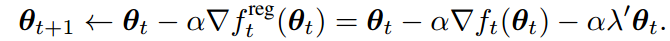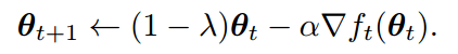 loss function에 L2 reg를 적용하고 미분하여 update 하는 식