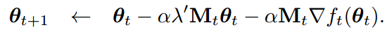 weight decay를 적용하면 다음과 같은 식이 도출되는데 이는 M != KI 이므로 loss function에 L2 reg를 적용한 식과 다릅니다.