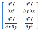 nxn 행렬의 헤시안 행렬의 모든 submatrix 의 det가 0보다 크면 양의 정부호 입니다. 만약 모든 submatrix의 det가 0보다 작다면 해시안 행렬은 음의 정부호 입니다. 임계점에서의 함수의 해시안 행렬의 determinant가 0이 아니지만 양의 정부호 또는 음의 정부호가 아닌 경우에 이 임계점을 안장점(saddle point)라고 합니다.