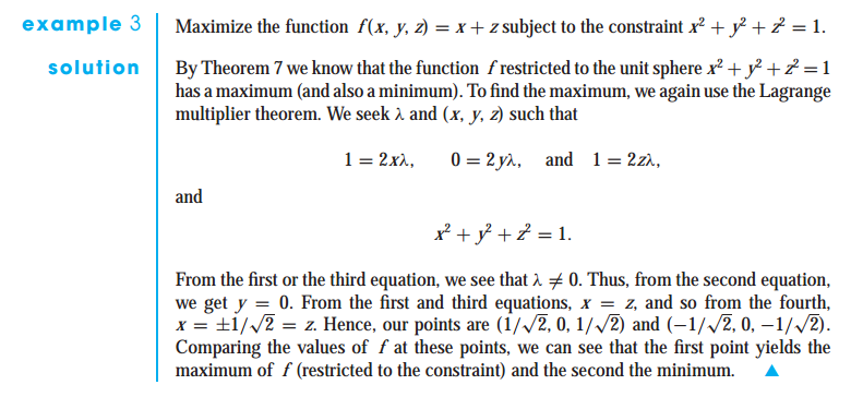 이러한 결과는 f의 제한된 극점을 찾기 위해서 위 두 정리를 만족하는 점 $x_0$을 찾아야 합니다.