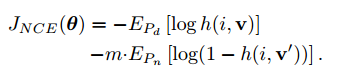 Pd is data distribution(positive), Pn is noise distribution(negative from different instance) as a uniform distribution, h is the posterior probability of sample i with feature v.