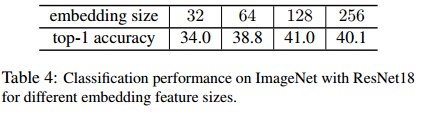 Performance for diffenrent embedding feature sizes