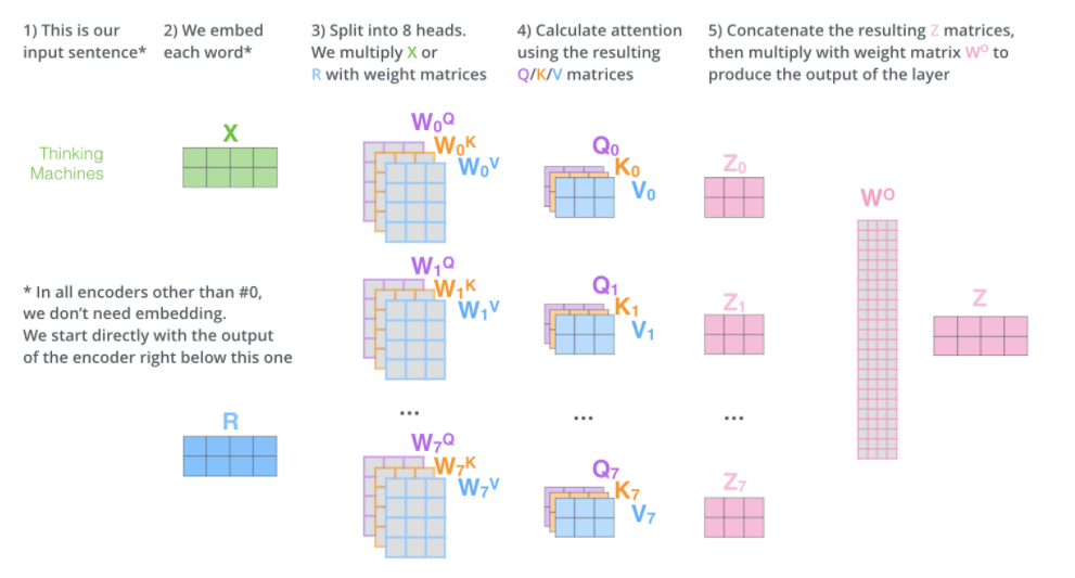멀티 어텐션 헤드 개수만큼 Q,K,V를 생성