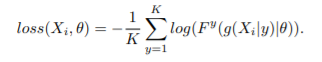 K is a number of discrete geometric transformation. G is geometric transformation. F is the ConvNet. $\theta$ is the parameters of the ConvNet.
