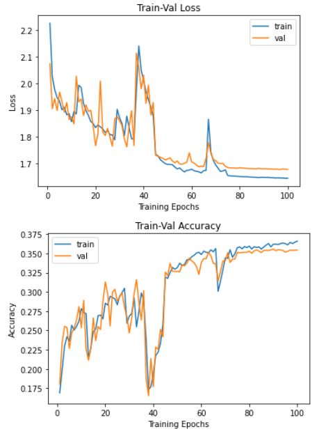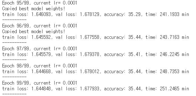 정확도가 35%밖에 안나오네요. STL-10 dataset에서 MobileNet+SENet이 70% 정도 나왔던 걸로 기억하는데, ViT의 성능이 잘 안나오는 이유는 여러가지가 있습니다.