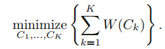이는 모든 K개 cluster에 대해 합한 total within-cluster variation을 가능한 최소가 되도록 모든 관측값들을 K개의 cluster로 분할한다는 것을 의미합니다.