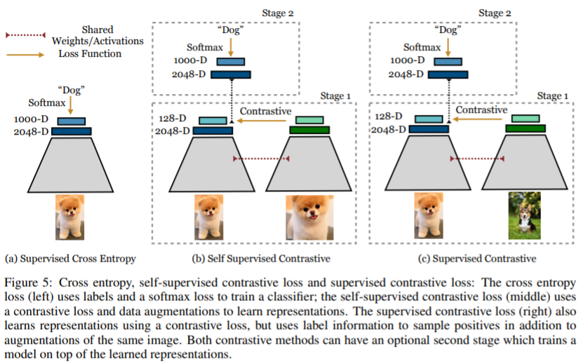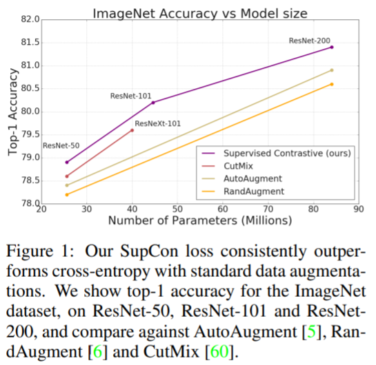 Supervised Learning에 Contrastive Learning을 적용하면 동일 Class의 image를 positive sample로 사용할 수 있습니다. 즉, 해당 논문은 많은 positive sample과 많은 negative sample을 사용하여 이점을 얻습니다.