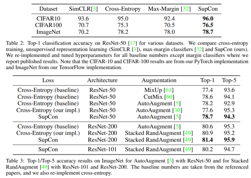 Self supervised Learning에서 주로 사용하는 Contrastive Learning 방법을 Supervised Learning에 적용한 Loss를 제안합니다. 해당 Loss는 기존에 많이 사용하는 Cross-Entropy Loss의 성능을 능가합니다.