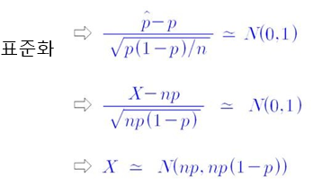 $p$가 0.5에서 많이 벗어나지 않은 경우 => 정규근사를 이용합니다.