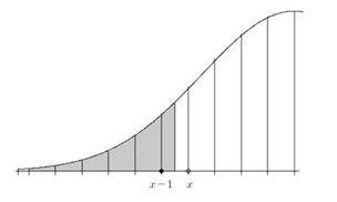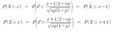 $$P(X < x) => P(X < x + 1/2)$$