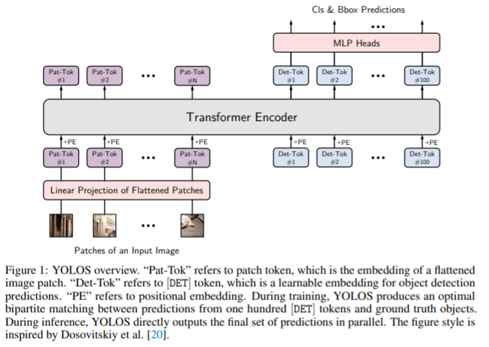 Vision Transformer(ViT)에 class token을 제거하고 Detection token(Det-Tok)을 추가하여 object detection task를 수행합니다. 즉, object detection task를 sequence-to-sequence 방식으로 해결하려 합니다.