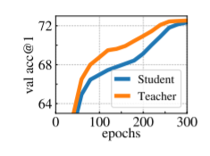 teacher network의 파라미터는 student의 평균이 되는 데 이는 앙상블한 효과를 갖습니다. 논문에서 실험 결과 teacher의 성능이 student보다 높다는 것을 보여줍니다.
